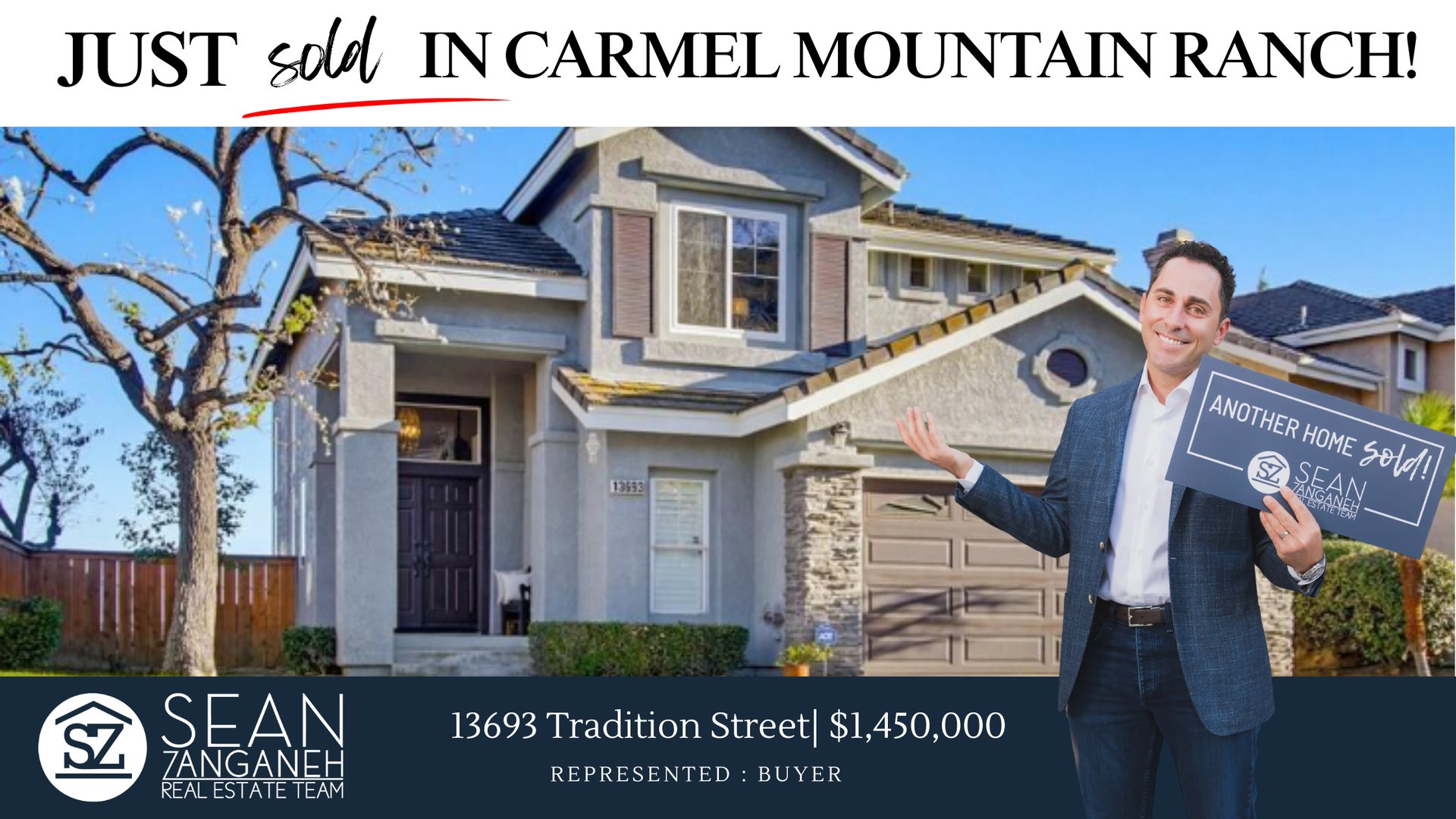 The Sean Zanganeh Real Estate Team is excited to announce another successful closing — this time representing the buyers at 13693 Tradition Street in the Walden community of Carmel Mountain Ranch.