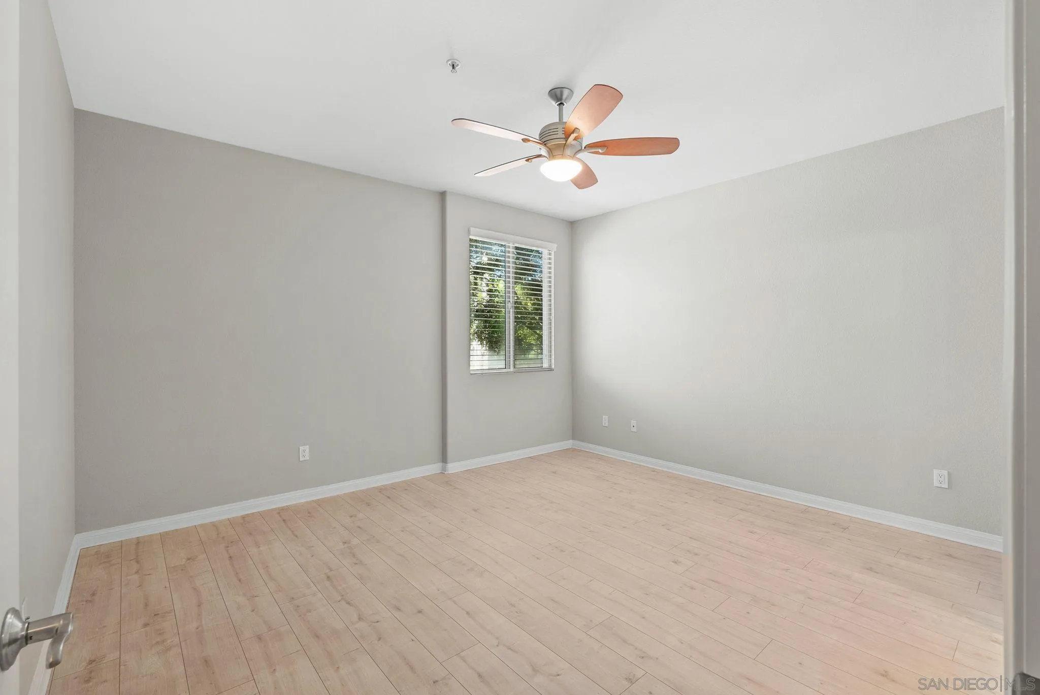 Remodeled Corner Unit + Largest floor plan that's rarely available + Large balcony= Big Win! Welcome to the highly sought after Pell Place at Del Mar Highlands! This beautiful unit has been recently renovated with New countertops, New laminate flooring and newly painted throughout. Located on the first floor, it provides an elevated north facing balcony for privacy and only has 1 neighbor connected. The master bedroom boasts a spacious walk-in closet and an en-suite bathroom with a double vanity. The second bedroom is perfect for guests or a home office. Building amenities include a fitness center, a community room, and a courtyard with a barbecue area. Amazing Location in the heart of Carmel Valley; walking distance to One Paseo, the Del Mar Highlands Town Center featuring Sky Deck & many other amazing restaurants, as well as the CV tennis club & top rated schools.